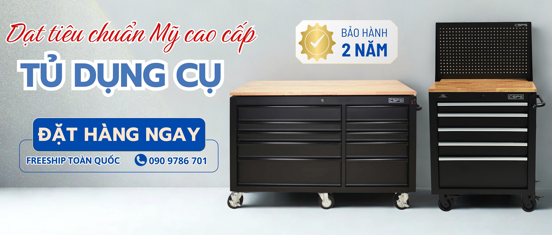 Tủ dụng cụ CSPS được thiết kế chắc chắn, bền bỉ với hệ thống ngăn kéo trượt êm ái, chịu tải tốt, giúp bạn dễ dàng sắp xếp và quản lý dụng cụ một cách khoa học.
