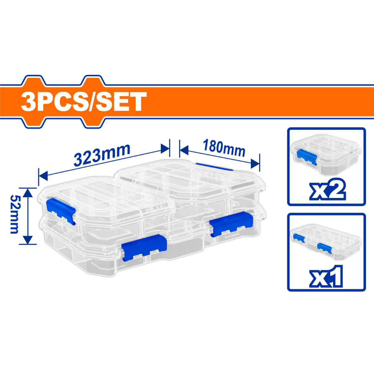 Bộ 3 Hộp Nhựa Trong Suốt Chia Ngăn WadFow WTB8343 - Giải pháp hoàn hảo cho sắp xếp linh kiện