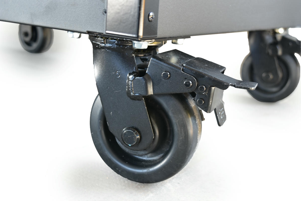 - Di chuyển linh hoạt – Trang bị bánh xe xoay & cố định, thuận tiện di chuyển trong xưởng hoặc gara.