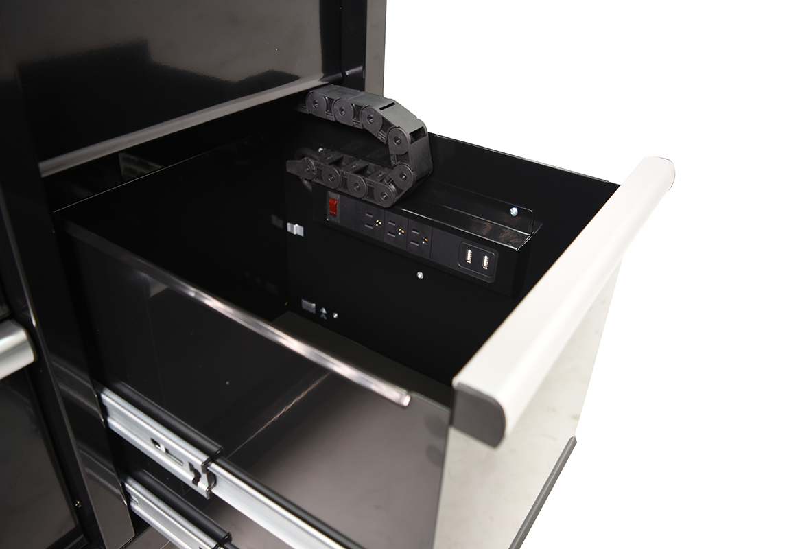 - 16 hộc kéo dung lượng lớn – trượt êm: Mỗi hộc kéo sử dụng ray trượt bi 3 tầng chất lượng cao, đảm bảo chuyển động mượt mà ngay cả khi chứa đầy tải. Từng hộc chịu được tải trọng lên đến 45 kg, tổng cộng 40.000 chu kỳ đóng mở, giúp tăng tuổi thọ và độ bền vượt trội so với các dòng tủ phổ thông.