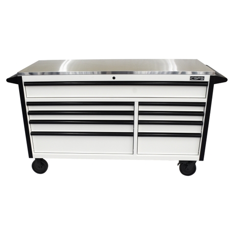 Tủ dụng cụ CSPS 152cm - 09 hộc kéo Trắng là lựa chọn phù hợp các xưởng cơ khí, gara ô tô và không gian làm việc chuyên nghiệp cần lưu trữ dụng cụ lớn. Tủ thiết kế 9 hộc kéo rộng rãi, khoa học, gọn gàng và dễ dàng thao tác. Sản phẩm được làm từ thép cao cấp, sơn tĩnh điện bền đẹp, đảm bảo độ bền lâu dài và khả năng chịu tải tốt.
