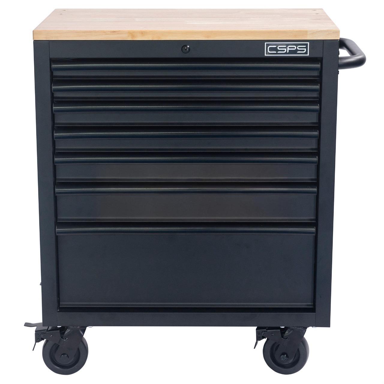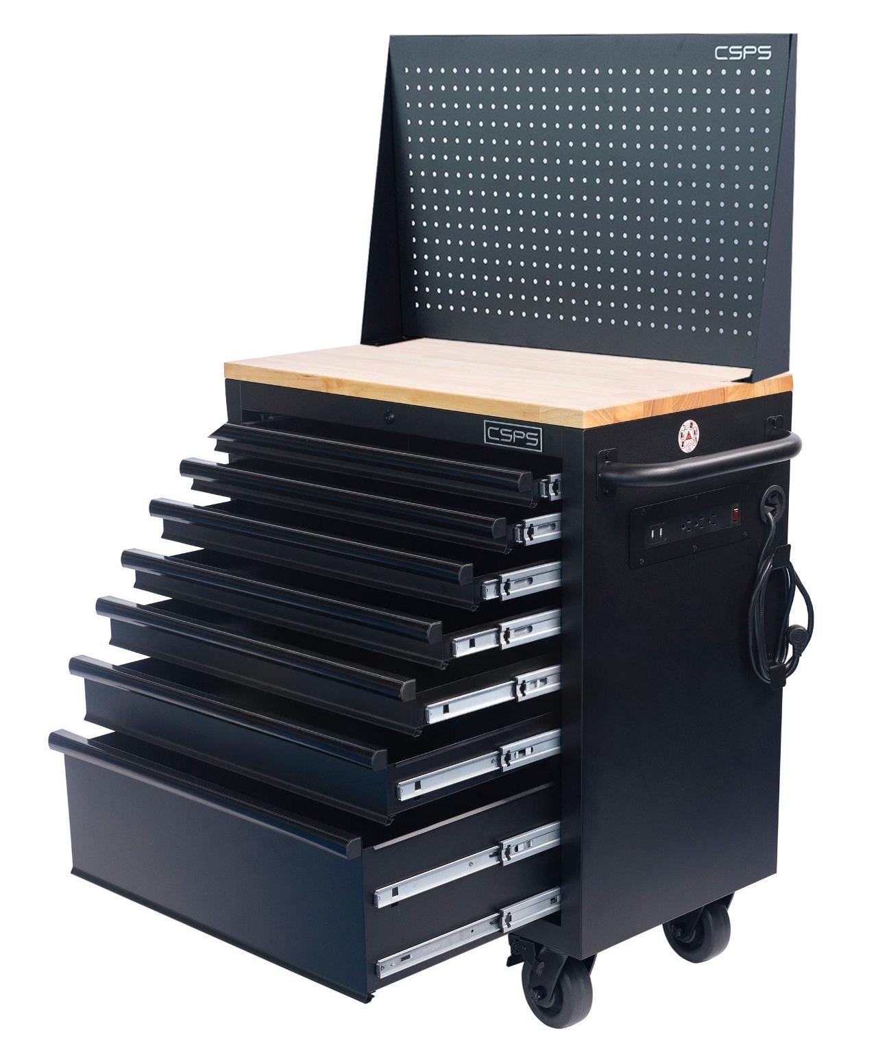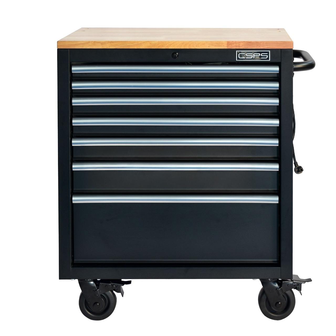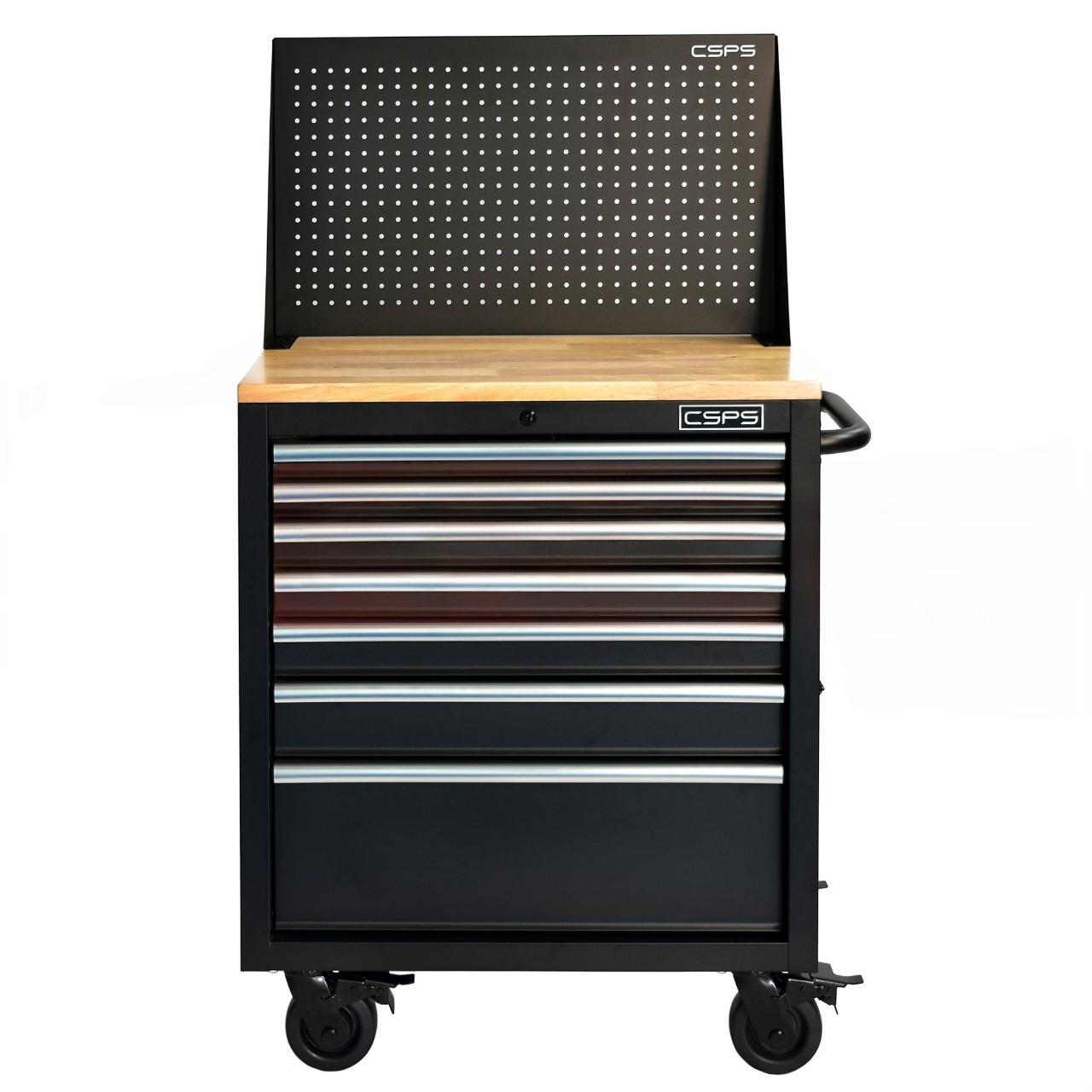 Tủ đồ nghề di động CSPS 76cm - 07 hộc kéo tay cầm Đen là lựa chọn hoàn hảo cho các garage ô tô, xưởng cơ khí và nhà máy sản xuất nhờ thiết kế chắc chắn, dung tích lớn và khả năng sắp xếp dụng cụ khoa học. Tủ có 07 hộc kéo, với tải trọng cao cùng tiêu chuẩn Mỹ. Đây chính là dòng tủ đồ nghề CSPS được nhiều thợ chuyên nghiệp và doanh nghiệp tin dùng tại Việt Nam.