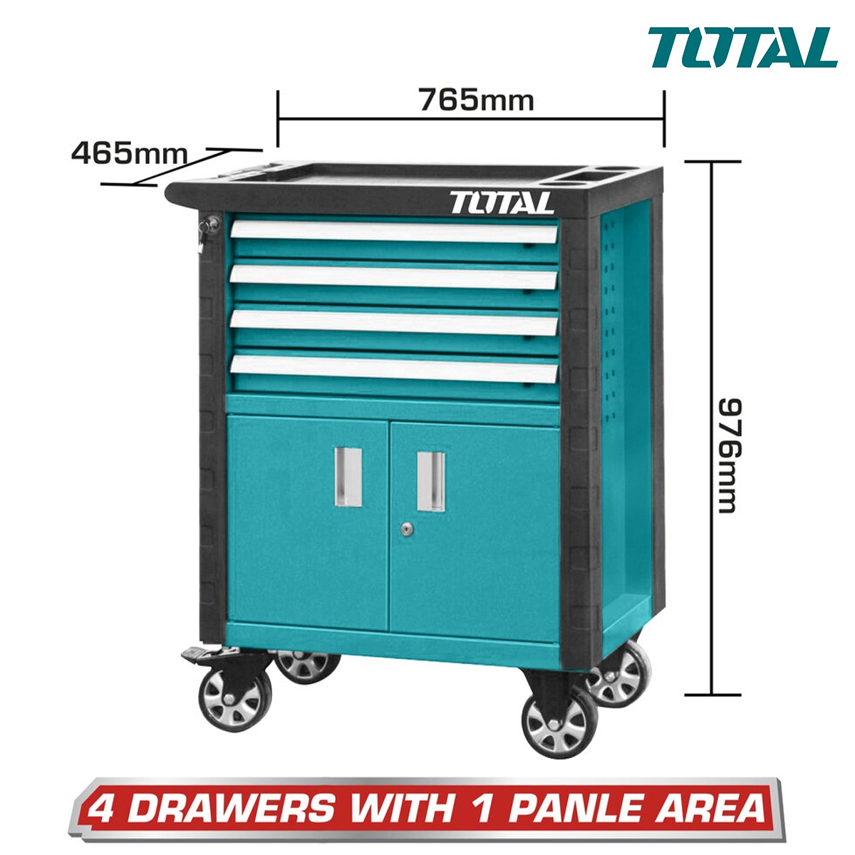 Kích thước tổng thể lý tưởng: Với kích thước tổng thể 765465812mm, tủ kéo này cung cấp không gian đủ rộng để lưu trữ công cụ một cách gọn gàng và tiện lợi. Ngoài ra, với bánh xe được tích hợp, bạn có thể di chuyển tủ kéo dễ dàng và linh hoạt.